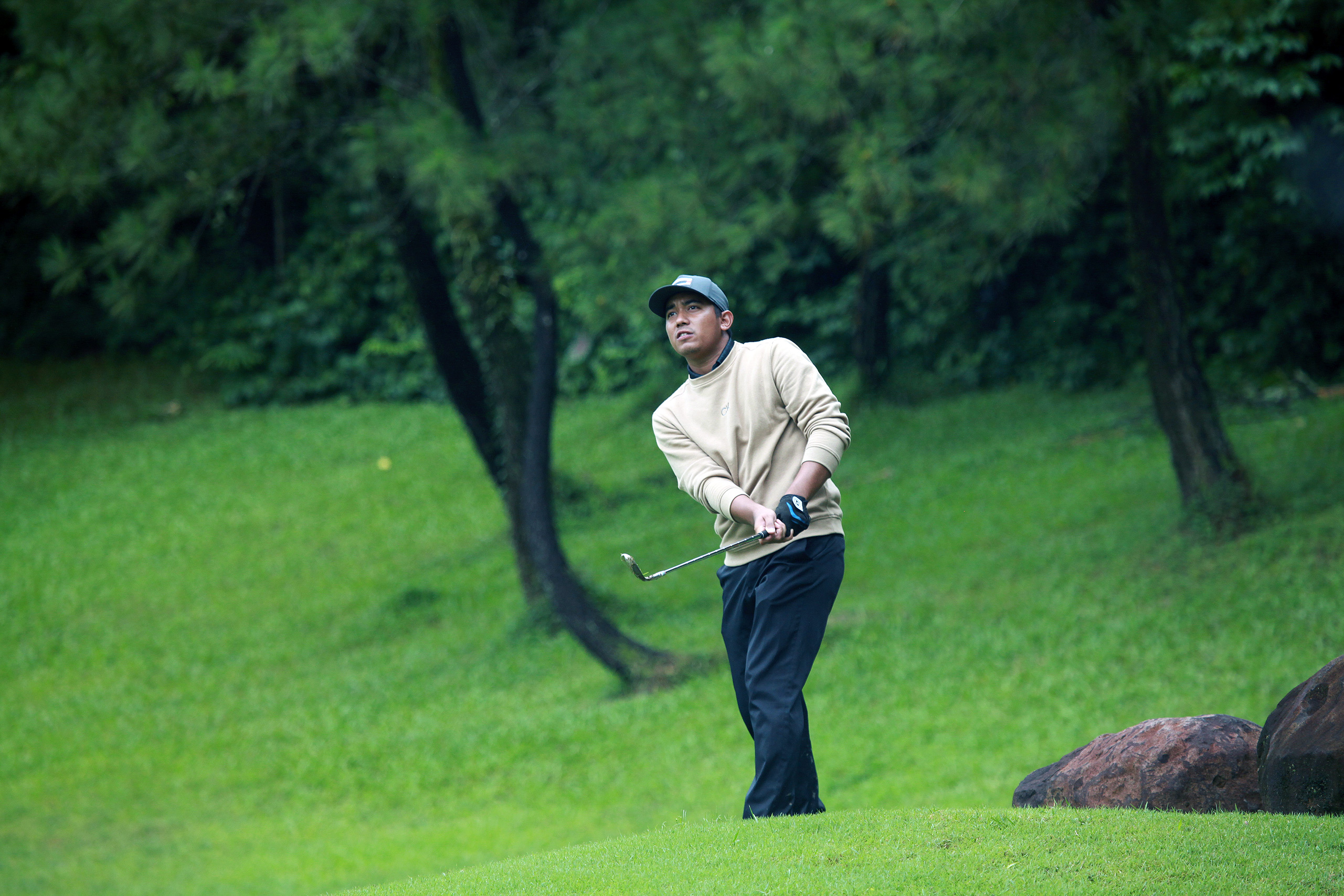 Dalam menghadapi tekanan sejak tee pertama, Ridwan memilih pendekatan sederhana namun efektif.